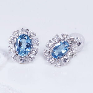 商品スペック ●アクアマリン:2石計約1カラット(オーバルミックスカット) ●ダイヤモンド:20石計約0.5カラット ●枠:18金ホワイトゴールド ●最大幅:約9.5×8.2mm ●重さ:約1.1g 約2〜3週間前後でお届けします。(...