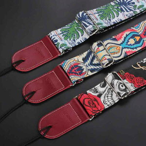 ・カテゴリ: ギターストラップ・主な素材: レザー、コットン・適用シーン: 楽器・カラー展開: グリーンリーフ、ピーコックフェザー、アメリカ国旗、スカル&ローズ、カラフルスカル・対応楽器: 西洋弦楽器