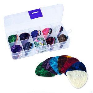 ピックサイズ:長さ30.5mm*幅26mm*厚み0.46mm ケースサイズ:13*7*2.3cm適用機器:ギター、ベース、エレキギター、