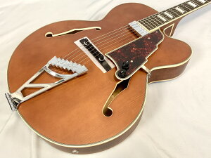 モデル、バロンが登場!最大の特徴と言えるのがこのアーチ形状のボディトップです。フラットトップのエレキギターに比べて、よりトップ材の杢目やカラーが引きたてられ