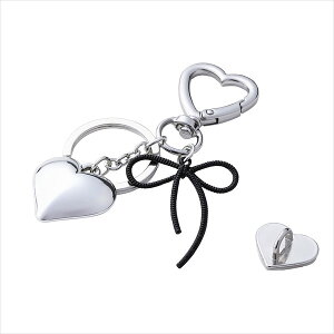 ■さりげないブラックリボンが落ち着いた大人の雰囲気を演出するチャームストラップです。 ■キーリング付きで、お好みのストラップやキーホルダーを自由に追加して楽しめます。 ■ハート型で、細部までかわいさにこだわったカラビナ