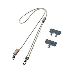 カラー:カーキ◆商品名:エレコム スマホショルダー スマホストラップ カジュアル ナイロン 丸紐 ストラップシート(1口&2口)付属 長さ調節可能 好きなスマホケースに挟むだけ 【i Phone、Android...