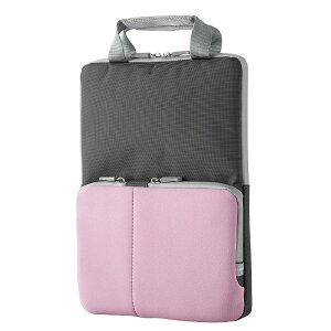 パソコンと周辺機器をまとめて収納できる、ハンドル付きポケットインナーバッグです。 11.6インチまでのノートパソコンを収納可能です。 前面にマウスやACアダプターなどの分厚い収納物にも対応できる伸縮ポケットが付いています。 収納