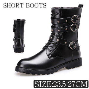 エンジニアブーツメンズ ショート レースアップブーツ ブーツ 編み上げブーツ サイドジップ ラウンドトゥ 袴ブーツ メンズ 靴 リベット
