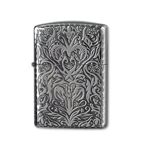 通常のZIPPOに比べケースの厚さが約1.5倍ある「ARMOR(アーマー)モデル」をベースに、その厚みを生かした3Dの深彫り彫刻を両面に施し、さらに柔らかな輝きを放つシルバーをメッキ。通常のZIPPOでは出せない芸術性...