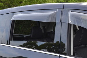 透過性の高いクリアスモークカラーのスポーティーカットのサイドドアバイザー!■強烈な日差しをカットし、雨天時の窓開けも快適!! ■OXバイザー「ベイシック」モデルと同様のスモークカラーを採用!■電動格納ミラーに対応した形状