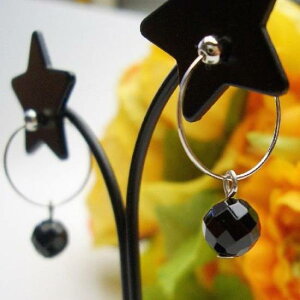 ミラーボールのようなカットを施したオニキスをセットしたシルバーピアスです。ブラック&シルバーカラーのアバンギャルドな輝きを、耳元でお楽しみください。ポストを引き上げると開く仕様となっており、着脱が簡単な点も非常にお勧