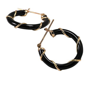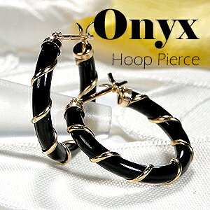 数料無料】 ★漆黒のオニキスと輝くゴールドがアクセント。 ☆シックでクールにきまる…ブラックオニキスにK18線を巻き付けた、シンプルなフープピアスです。厚みは約2.5mm。フープの直径は2cmと程よい