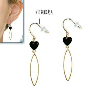 お勧め 18金イエローゴールド/YGK18掛け式フック使用(K18刻印あり)/国内産マーキス/フープ/合金/ゴールドトーン約8mmブラックオニキスハートシェイプ/黒/加工あり/パワーストーンサイズ:長...
