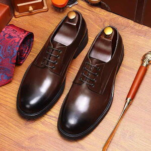 【通気性】通気性に頭層牛皮素材が、靴内の湿度を調節し、蒸れや不快感を軽減します。柔らかいソフトソールと組み合わせることで、中老年男性の足に優しい快適さを実現。すべての季節、特に秋冬季のビジネスシーンで活躍し、通気性の高さが特徴です。 ...