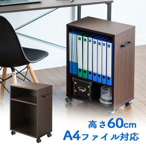 デスク下への収納や、サイドワゴンとして使用できるデスクワゴン。A4ファイルも収納可能、取っ手付き、キャスター付きで引き出しやすい収納ラック、木製ファイルワゴン。<特長>●落ち着いた木目柄のデスク下用ワゴンです。●高さ60cm