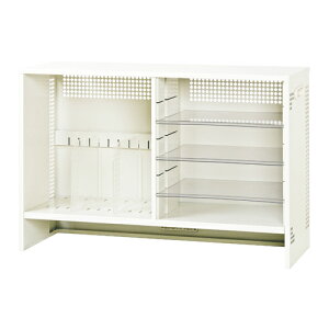2段の棚は51mmピッチで高さ調整できます。 天板厚み15〜36mm、設置箇所奥行き40mm以上のデスクに取り付け可能です。必ず壁付けでご使用ください。 商品番号 68-GZUSRH2-1000 組立状態 お客