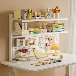 【金属複合材質】デスク上ラックは金属複合材質でできており、防水性、耐傷性、耐久性、耐荷重性が高いで、掃除が簡単で、健康的で環境に優しいです。本、文房具などの小物がテーブルの周りにきれいに保管できます。 【穴板付き】穴付