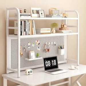 デスク上収納ラック デスク上置き棚 机上ラック 立て卓上ラック デスク上置棚 パンチングボード 棚 卓上本棚 机上本棚 書類整理 空間活用 小物整理 (ブラック二層,135*99cm)