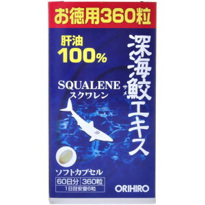 「オリヒロ 深海鮫エキスカプセル 徳用 360粒」は、深海鮫肝油から得られた純度99.6%以上の精製スクワレン (スクアレン)を採用した健康補助。