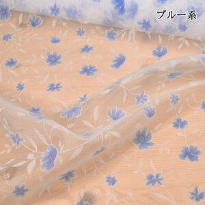ホワイトのオーガンジー地にお花のフロッキー加工を施した生地です。 ラメも入っていて上品でとっても可愛い!! ※汚れがある場合があります。ご了承の上ご購入くださいますようお願い申し上げます。 布巾…約144cm 素材…ポリエステル