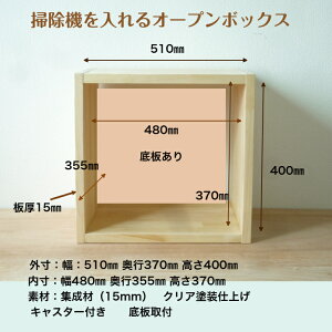 【注文製作】掃除機を入れるボックス オープンボックス 外寸:幅510mm 奥行370mm 高さ400mm 素材:集成材(15mm)クリア塗装仕上げ底板付き キャスター付き