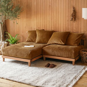 天然木とファブリックの調和で暖かみのあるファブリックローソファ! フレームは独立型で多様な使い方が可能です。 座面は底付きがなく長時間快適にお過ごしいただけます。 座面・背もたれは置き型なのでソファ下の空間と合わせて掃除