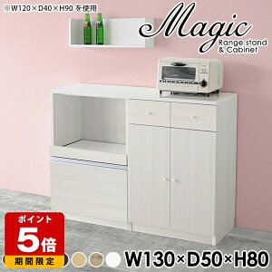 magic レンジ台×キャビネット W130×D50×H80 木目サイズサイズ:約幅1300 奥行き500 高さ800 mm材質[天板・スライド棚]メラミン樹脂化粧合板[前板]ブラウン・ダークブラウン・チーク/デルナチュレ化粧合板ホワ...