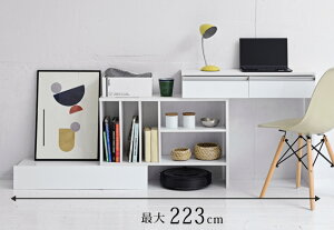 幅85.5-223奥行28.5高75cm。オープンラック 白 カウンター下収納 スリム マルチデスク 伸縮 オープンラック 白 薄型 間仕切り キッチン リビング 収納台 鏡面 カウンター下のデッドス...