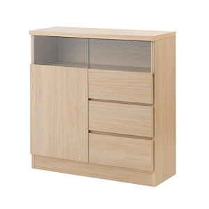■商品の仕様/前・天板:強化プリント紙化粧繊維板、その他:プリント紙化粧繊維板■商品サイズ/(約)幅79×奥行29.5×高さ80cmガラス部内寸:(約)幅73.5×奥行26×高さ18cm扉内内寸:(約)幅34×奥行26×高さ46cm引...