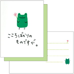お花を持ったカエルのイラストがかわいいミニグリーティングカードです。 中はワンポイントのイラストと書きやすい罫線付。 「こころばかりのものですが。」 サイズ:カード60×80mm/封筒65×90mm/バーゴ印刷...