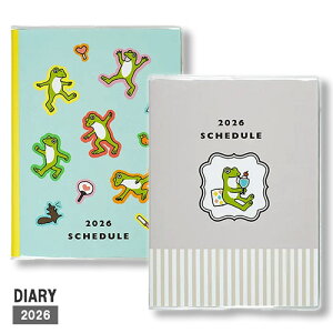 気軽に使える月間タイプのスケジュール帳です。ページ毎にちりばめられたカエルたちのイラストが、 毎日の生活を楽しくしてくれそうです。 コンパクト&薄型なので持ち運びに便利で、さらにビニール製のカバー付きなので汚れやキズに