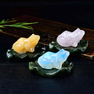 ・素材: ローズクォーツ・カテゴリ: 幾何学模様・種類展開: ローズクォーツ製カエルと台座、トパーズ製カエルと台座、オパール製カエルと台座・スタイル: モダンミニマリスト