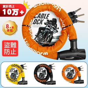 バイク・自転車の盗難防止・イタズラ防止の必需品! バイク用セキュリティロック! ○長さ1800mmのロングサイズ!22mm径の極太ワイヤーにスチールカバーの2重構造で盗難防止力抜群!! 1800mmの長さがある本格的なワイヤーロックで...