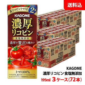 【全品送料無料】カゴメ 濃厚リコピン 195ml紙パック 48本 野菜ジュース トマトジュース トマト100% 食塩無添加 訳ありでもなくお得♪