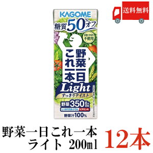 【商品説明】カゴメ 野菜一日これ一本 ライト 200ml 12本入 KAGOME 野菜1日これ一本 light 「野菜一日これ一本Light」は、30品目の野菜と野菜350g分を使用した野菜ミックス濃縮ジュースです...