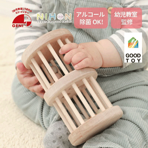 〜ころころ転がすと木の球の心地よい音が響く、 タワーの形をしたラトル♪〜 縦にして上下を返すとパラパラ落ち る球の動きと音を楽しむことができ、 横にして転がすと赤ちゃんの目の前でカラコロと音を