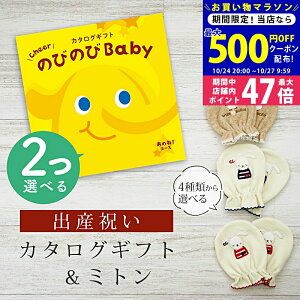 セット内容 ・ベビーミトン1セット・スタイ1枚 ・カタログギフトのびのびBaby《もっと!コース》一冊(申し込みはがき1枚) 化粧箱サイズ 22×22×2cm 《ミトン》 ◆サイズ:たて10×よこ7.5cm...