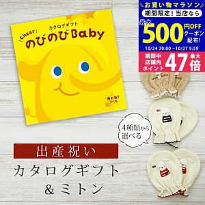 セット内容 ・ベビーミトン1セット・スタイ1枚 ・カタログギフトのびのびBaby《あそぼ!コース》一冊(申し込みはがき3枚) 化粧箱サイズ 22×22×2cm 《ミトン》 ◆サイズ:たて10×よこ7.5cm...