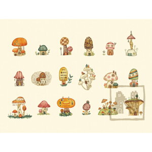 キノコファンにはたまらないキノコの街のコレクション 空想の街をテーマにレトロで温かみのある水彩画を描く空想街雑貨店さん。 圧倒的な作品数の中から、きっとあなたにぴったりの風景が見つかるはずです! 裏面に絵の題名と一言説明