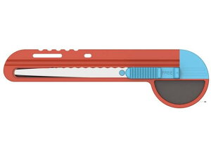 ギザノコ刃、1mメジャー、10cm定規、マグネットシートなど、梱包・開梱に便利な機能を盛り込んだカッター【仕様】●色:レッド×ブルー●刃幅:1mm●本体サイズ:140×41.5mm●材質:刃/ステンレス...