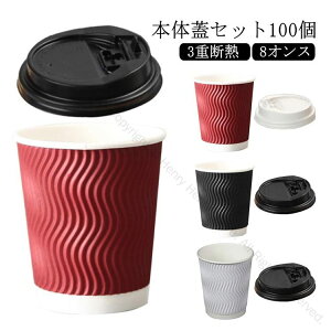 紙コップ 使い捨て 蓋付き 100個入セット コーヒー カップ 耐熱 業務用 テイクアウト カフェ ホットドリンク 紙コップ 三重断熱紙コップ 厚紙 カップ ドリンクカップ お茶カップ