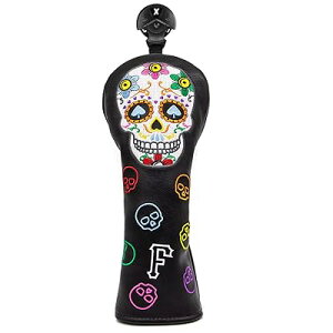 ゴルフクラブヘッドカバー ウッドカバー ドライバー フェアウェイウッド ユーティリティ ハイブリッド用ヘッドカバー 番号タグ付き ゴルフヘッドカバー PUレザー製 おしゃれ カラフルスカル刺繍 ブラック...