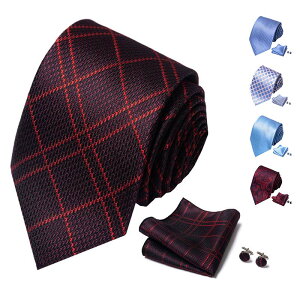 「パッケージ内容」ネクタイ1本:幅 8cm | 長さ 148cm 、ポケットチーフ1本:25cm*25cm 、カフスボタン2本:1.5cm*1.5cm 「上質な生地」ネクタイは耐摩耗性に優れたポリエステル素材でできており...