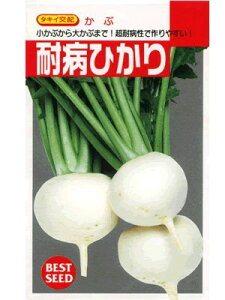 家庭菜園向きの一番作りやすいカブです。 初心者の方には、まずこの「耐病ひかりカブ」をお勧めします。 小カブから大カブまで自由な大きさで取れるのもうれしい種です。 ス入りの心配はほとんどありません。 一般地では秋まきだけでな