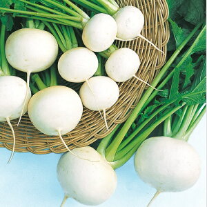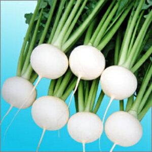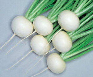 【種子】 春まき、秋まき何れにも適し、耐病勢強く、容易に栽培できます。根部はやや腰高で、光沢のある純白色、早太り多収のうえ、揃いも良いです。煮食、漬物としてとてもおいしいです。