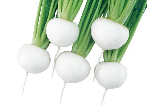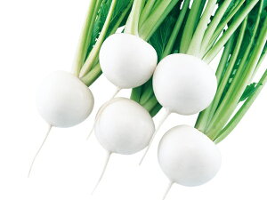 ◆特性 肉質はやわらかで甘味があり、サラダ等の生食に最適な品種です。又、従来通り漬け物や煮炊きに利用しても大変美味です。 球は7cm前後の腰高でツヤのある純白色、ス入りや根割れの心配も少なく栽培は容易です。 草姿は立性で葉色