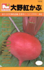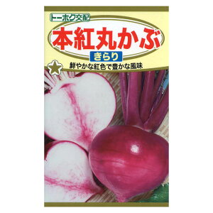 鮮やかな紅色で豊かな風味[特長]:■春まきと秋まきができます。約10cmで漬け上がりの紅色が鮮やかな赤カブ品種※蒔き時期、収穫・開花時期等はパッケージ裏面の記載をご確認ください。※育成目安については、環境による変動があるため、