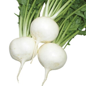 関東地方を中心につくられている小カブの代表種です。直径8cm、球に近い腰高で、肉質はち密、甘みと独特の風味があります。葉もおいしく、煮物、漬物、油炒めなどに向きます。