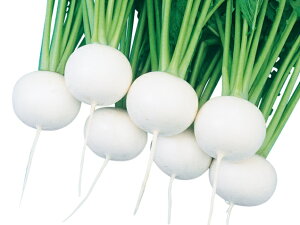 ◆特性 根部は尻のつまり、首のしまり共によく、腰高の美球でよく揃い、美しい純白のかぶで直径4cmの小かぶから7cmぐらいの中かぶとなります。 肉質は緻密で甘味に富み食味上々です。 茎葉は中型で毛じが少なく、軸折れしにくく収穫や結