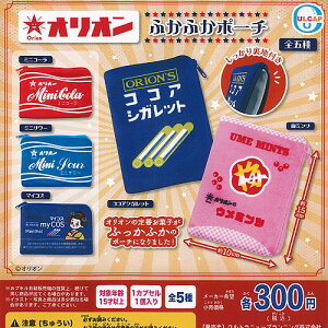 ウルトラニュープランニング 300円カプセル自販機商品のフルコンプです。【オリオン ふかふか ポーチ 全5種セット】★ラインナップの種類は以下となります。 1:ココアシガレット 2:梅ミンツ 3:ミニコーラ...