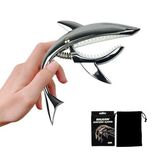 商品:シャーク・カポタスト 素材:スチール サイズ:(約)10.5cmbr> カラー:シルバー(マット)/シルバー(光沢あり)/ゴールド/ブラック/ブロンズ ◆ライブで映える、魅せ方にも拘ったカポタスト ◆口を開かせて...