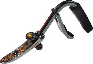 アコースティックギター・エレキギターにフィットするカーブドタイプです。 ニッケルメッキネックに触れる部分は、塗装を傷めにくいナイロン製のギターストラップに似た素材を使用。コンパクトで薄い形状で、フィンガリングの邪魔にな