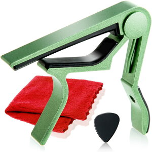 【高品質素材】 このカポタストは、アルミニウム合金を使用しており、軽量でありながら非常に耐久性があります。長時間の使用でも変形せず、しっかりとしたクランプ力を維持します。 【簡単操作】 片手で簡単に操作できるカポタストで