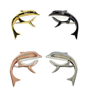サイズ:(約)9cm×9cm カラー:シルバー/ゴールド/ブラック/ローズゴールド ◆ライブで映える、魅せ方にも拘ったカポタスト ◆口を開かせて、フィンガーボードにイルカを噛り付か